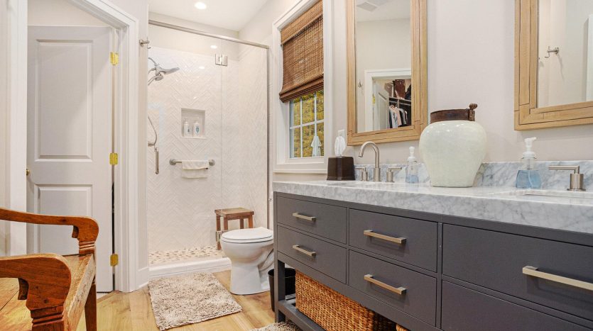 The main level offers two bright bedrooms, including a luxurious primary suite with all new custom vanity, built-ins, walk-in closet, and new flooring. The finished lower level adds versatile living space with a private bedroom suite, rec-room and bunk room (no closet/potential 4th bedroom with ingress/egress window), ideal for guests or family.